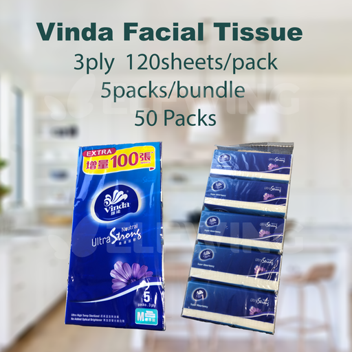$50.00| /Vinda Neutral Ultra Strong Facial Tissue Soft Pack 3ply 120 Sheets 50 PacksVinda Neutral Ultra Strong Facial Tissue Soft Pack 3ply 120 Sheets 50 Packs Features 100% Virgin Wood Pulp Super Absorbency Ultra High Temp Steri... View full details$50.00| /Sale