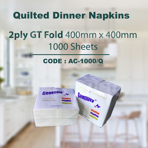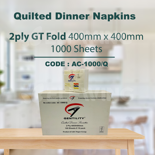$52.00| /A&C AC-1000/Q AC-1000/QQ Quilted Dinner Napkins GT Fold/Q-Fold 2ply 400mm x 400mm 1000 Sheets (White)Contact us if you need to buy it in pallets. Strong Strong even when wet Hygienic Individually packed in clear plastic damp and mould free. Absorp... View full details$52.00| /Sale